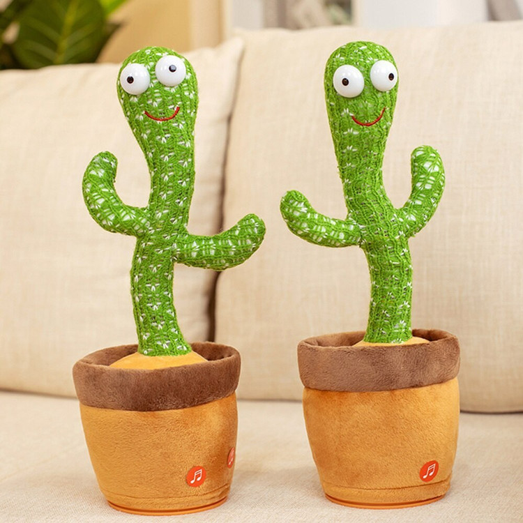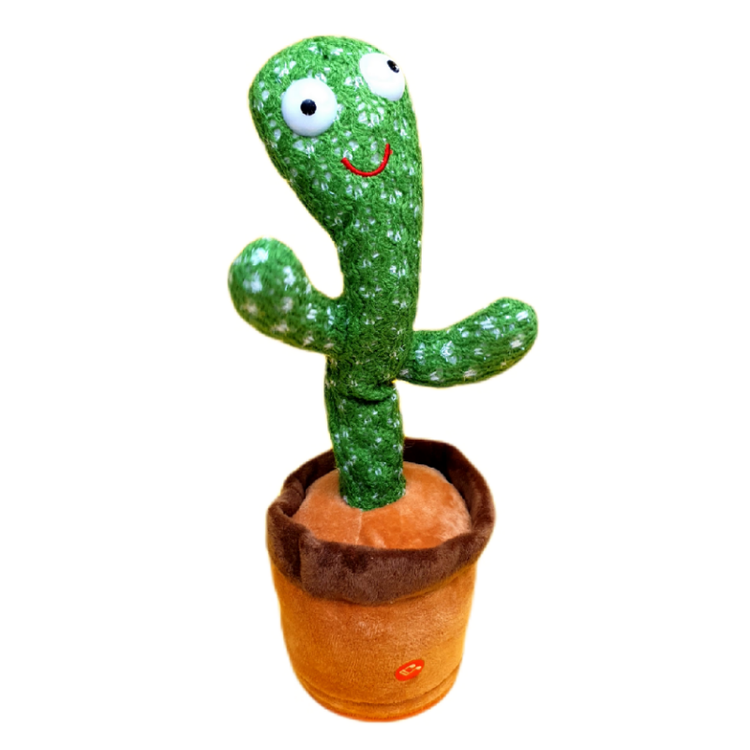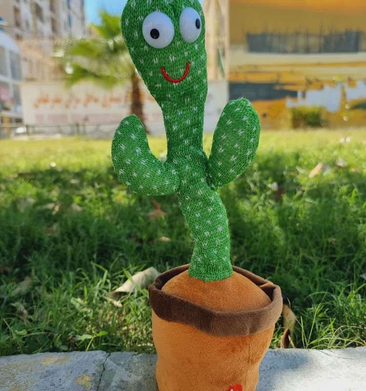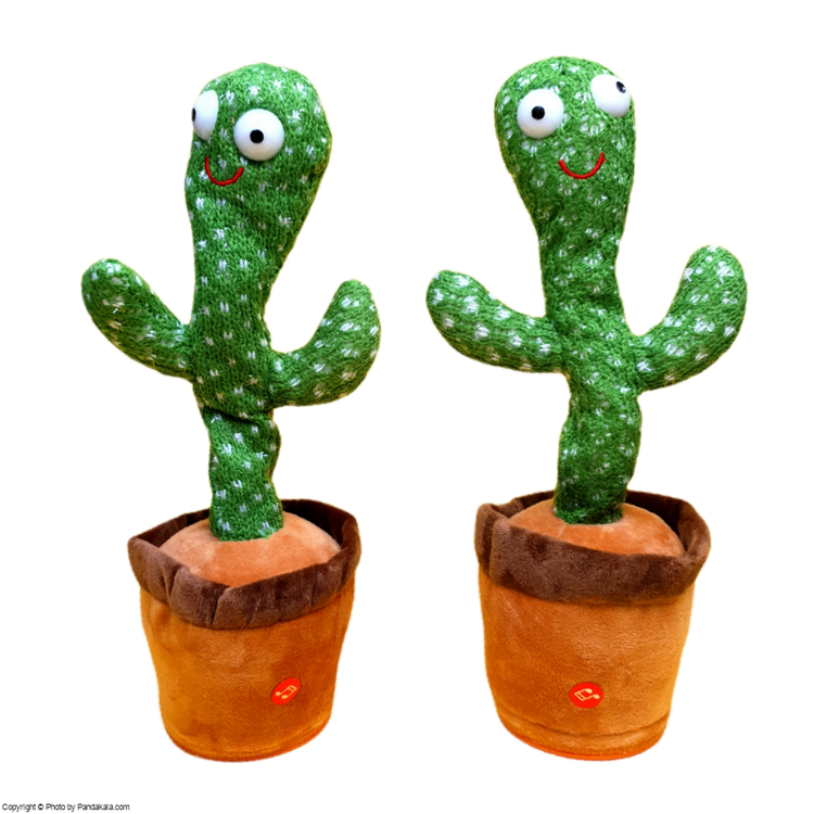 عروسک کاکتوس رقصنده سخنگو یکی از جدیدترین عروسکهای دنیاست که عکسها و فیلمهای آن در فضای مجازی به سرعت پخش شده و دست به دست می شود. این عروسک کاکتوس سخنگو همانطور که از اسمش مشخص است، میتواند حرف بزند و دارای رقص نور است. هر حرف یا صدای شما را تکرار می کند و همزمان با حرکات و عجیب و بامزه می رقصد. این عروسک کاکتوس هوشمند بچه ها را شگفت زده می کند. عروسک کاکتوس متحرک دارای یک گلدان نرم و لطیف پولیشی و یک کاکتوس سبز رنگ بانمک است. این عروسک با سه عدد باتری قلمی کار می کند و دکمه ای برای خاموش کردن و روشن کردن دارد. چشم های بانمک این عروسک ظاهرش را خنده دار میکند و برای بچه ها و بزرگتر ها بسیار جالب است.