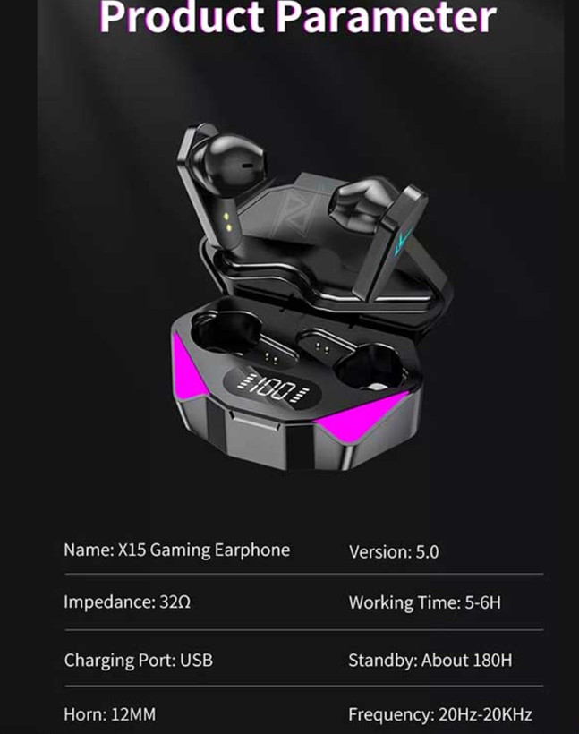 هندزفری و ایرپاد گیمینگ بلوتوثی بیسیم مدل X15 اورجینال مناسب برای موسیقی، استفاده روزمره و گیمینگ – ایده آل برای پابجی، کالاف دیوتی، اپکس موبایل، فورتنایت و فری فایر PUBG, Call of duty , Fortnite, Apex Legends Mobile
