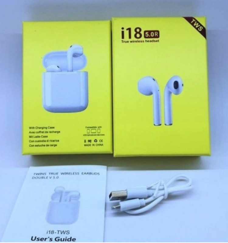 هدفون بلوتوث مدل i18 tws از لحاظ طراحی، اندازه و وزن، شباهت زیادی به ایرپاد های شرکت اپل دارد و به لطف استفاده از ایرپاد های اپل، طراحی بی نقصی را شاهد هستیم. داخل جعبه، باکس هدفون های به همراه ایرپاد ها قرار دارد و یک کابل کوچک شارژ (کابل لاتنینگ) و دفترچه راهنما قرار دارد .نحوی شارژ هدفون بلوتوث مدل i18