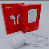 هدفون بی سیم i15 Pods یک هدفون دو گوشی بلوتوثی می باشدکه قابلیت اتصال به گوشی های با سیستم عامل ios و Android را دارد که توسط بلوتوث به گوشی و تبلت وصل می شود محدوده کار آن 10 متر می باشد هر دو گوشی قابلیت مکالمه دارند و نحوه شارژ آن به وسیله باکس همراه صورت می گیرد به طوری که گوشی داخل باکس قرار گیرد با فشار دادن دکمه روی باکس بصورت خودکار شارژ می شوند مدت زمان شارژ شدن گوشی ها 60 دقیقه زمان نیاز دارد که در حالت مکالمه 3 ساعت قابلیت مکالمه دارد همچنین در صورت پخش موسیقی 4 ساعت نگهداری شارژ دارد این هدفون باکس آن در مدت زمان 5 ساعت بصورت کامل شارژ می شود و نگهداری شارژ آن 120 ساعت می باشد همچنین دارای نشانگر شارژ می باشد امپدانس آن 32 اهم می باشد .