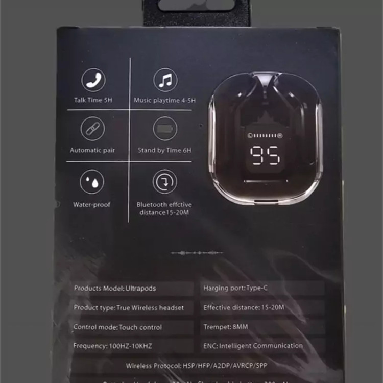 محفظه شارژر هدفون ، گوشی های هدفون جنس رابط:Bluetooth منبع تغذیه هدفون:محفظه شارژر قابلیتهای هدفون، هدست و هندزفری:نشانگر LED محدوده عملکرد:15 الی 20 متر عمر باتری:سه تکرار شارژ گوشی ها نوع گوشی:دو گوشی عمر باتری هدفون در حالت مکالمه:5 ساعت مداوم ساعت عمر باتری هدفون در حالت پخش موسیقی:4-5 ساعت عمر باتری هدفون در حالت استندبای:750 عمر باتری محفظه شارژ:سه بار شارژ کامل گوشی ها ساعت زمان موردنیاز برای شارژ هدفون: 40 دقیقه در محظه شارژر ساعت زمان مورد نیاز برای شارژ محفظه: 2 ساعت ساعت وزن: 50 گرم نسخه بلوتوث: 5.3 سایر مشخصات: جنس بدنه از شیشه براق مقاوم در برابر ضربه و گرد و غبار و مقاوم در برابر زرد شدن یا مات شدن محفظه شارژ ظرفیت باتری: 300 میلی آمپر ساعت نوع کابل: USB Type-C-USB نوع اتصال: بلوتوث رابطها: USB Type-C – Bluetooth ویژگیهای خاص: دارای بدنه مقاوم قابلیتهای مقاومتی: مقاوم در برابر آب گ س